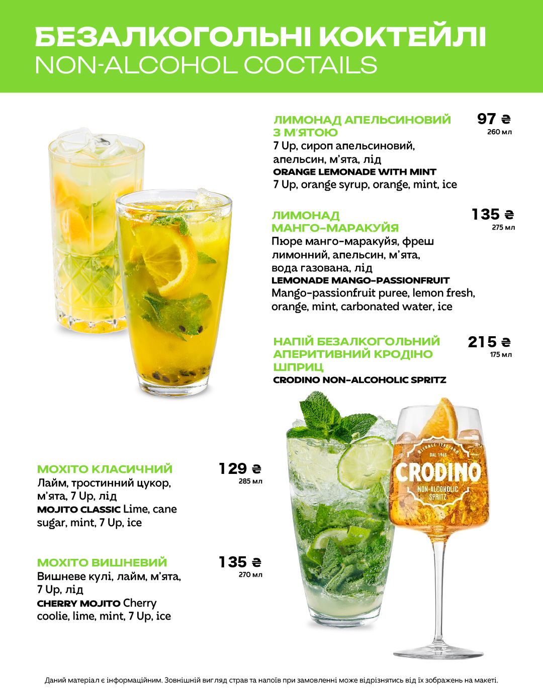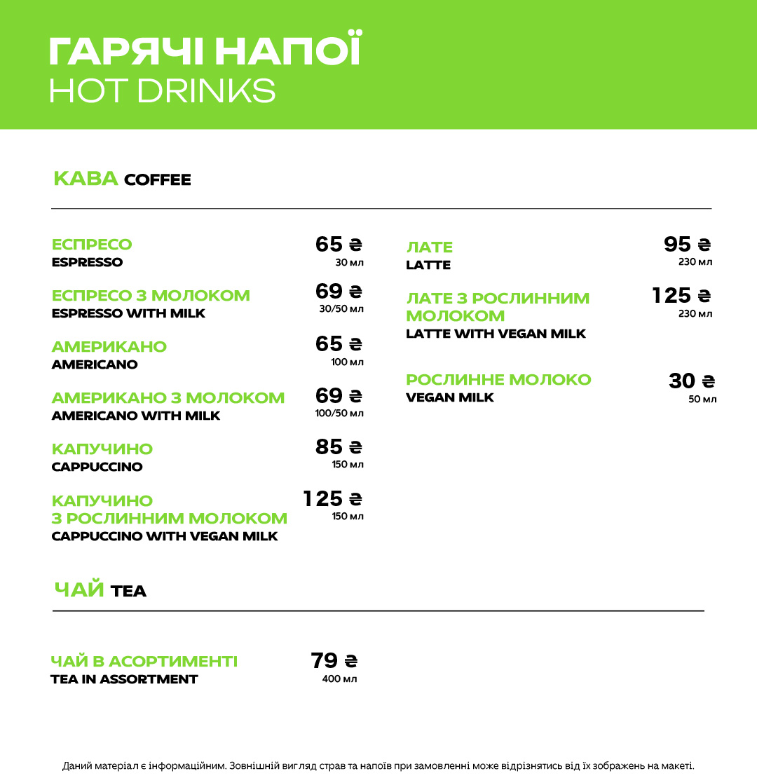 Меню в ресторанах