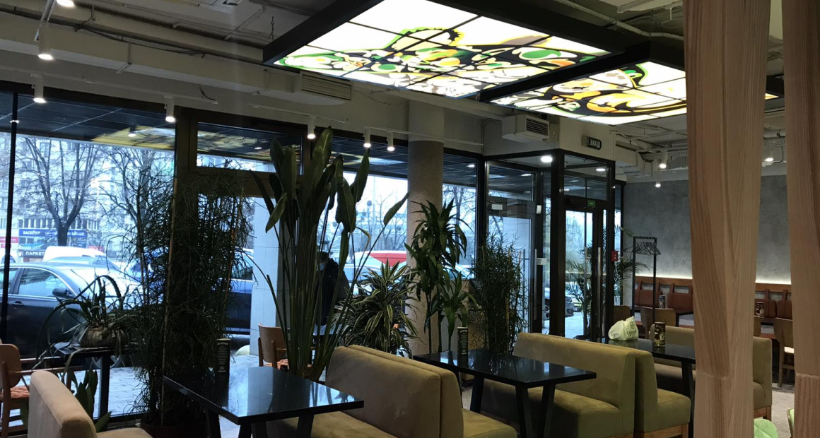После романтической прогулки по Голосеевскому парку, японская кухня может стать отличным завершением вечера. Интерьер ресторана выполнен в традиционном стиле "Сушия". Есть две летние площадки, где можно пообедать или поужинать при хорошей погоде. Также есть большой зал на 60 гостей, которые могут расположиться на мягких диванчиках и креслах.