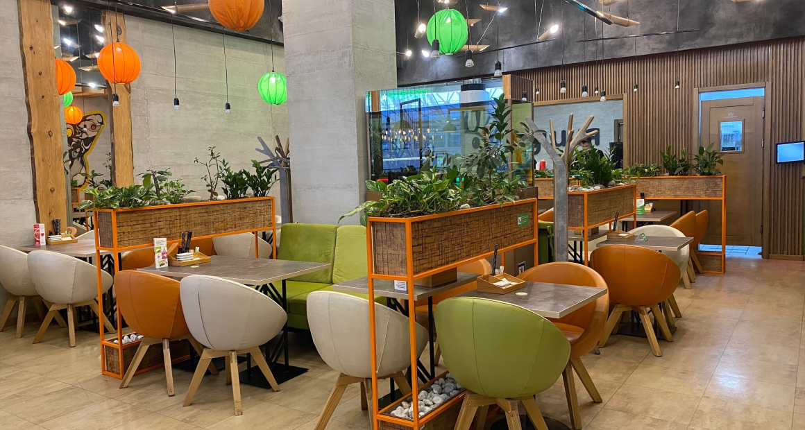 Заведение обустроено в новом современном стиле "Сушия", с элементами традиционного японского стиля (живыми цветами и декоративными элементами из настоящего дерева). Гости могут расположиться как в центральном зале ресторана, так и в зале с видом на ТРЦ и фонтан. Ресторан в ТРЦ Lavina Mall может похвастаться светлым и уютным интерьером, благодаря чему заведение отлично подойдет для проведения встреч или свиданий.