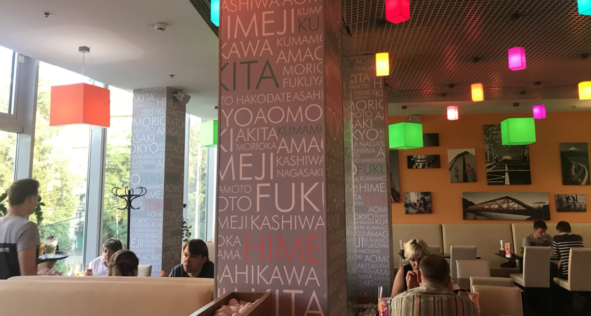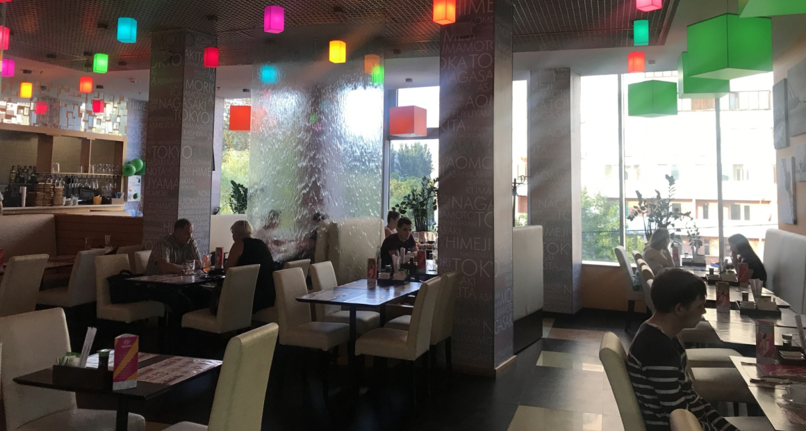 Изюминкой ресторана является контактная барная стойка, на которой посетители могут напрямую пообщаться с барменом и поделиться впечатлением о японских блюдах и поданных напитках. Интерьер заведения выполнен в новом стиле сети "Сушия". Огромные панорамные окна с видом на проспект Победы делают ресторан светлым и уютным. Атмосфера заведения располагает к проведению деловых встреч, посиделок с друзьями и романтических свиданий.